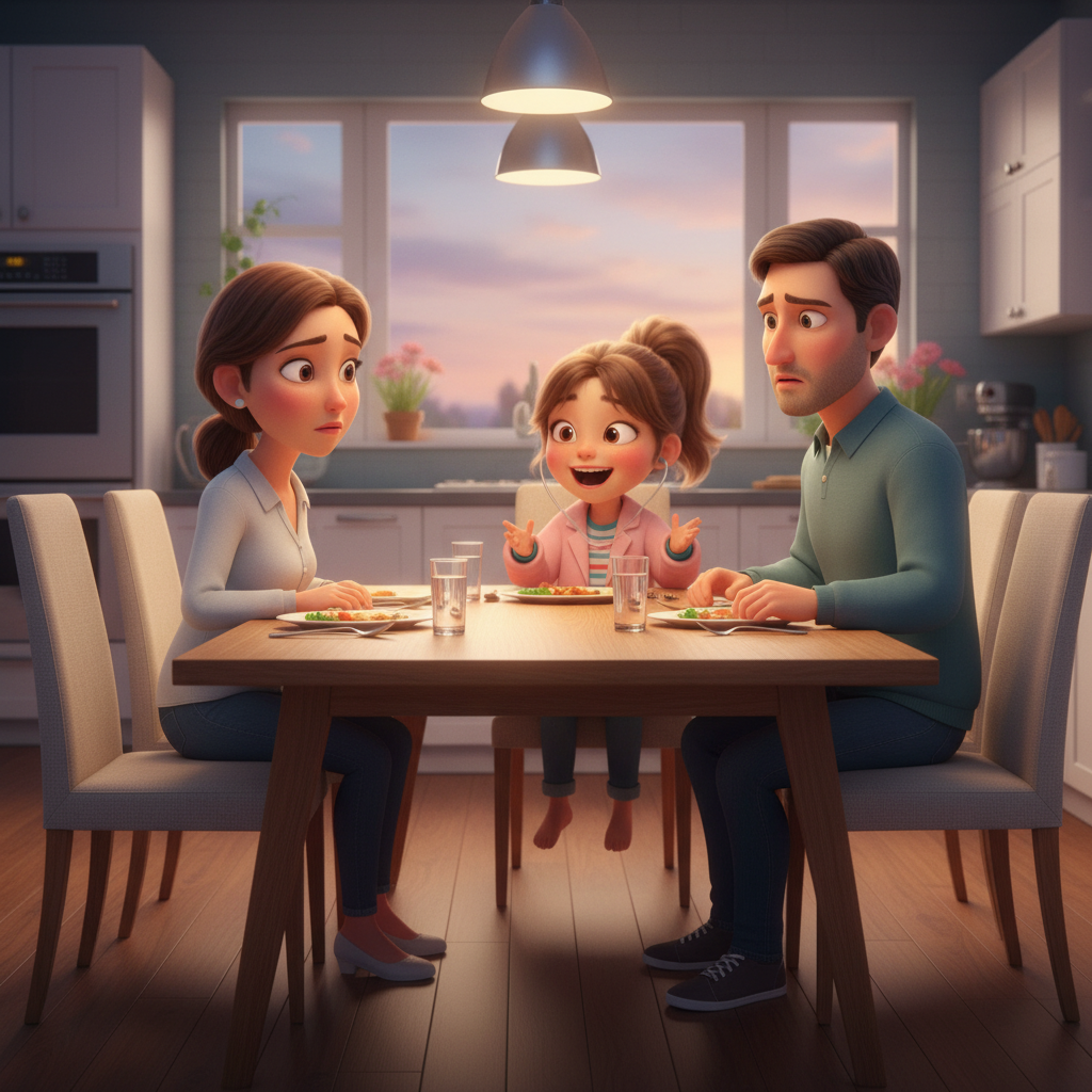 Silence fell over the table. His father coughed, uncomfortable. His mother smiled, but not a smile that reached her eyes.