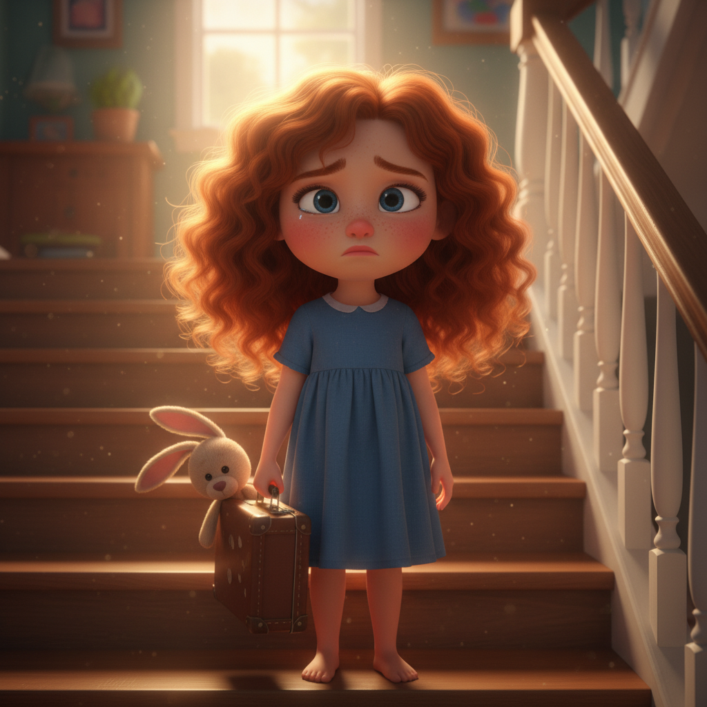 One evening, Capucine had had enough. She went up to her room and packed her suitcase: her cuddly bunny toy, three books, her favorite dress, and her crayons. She was going to leave, so they could see how much they missed her!