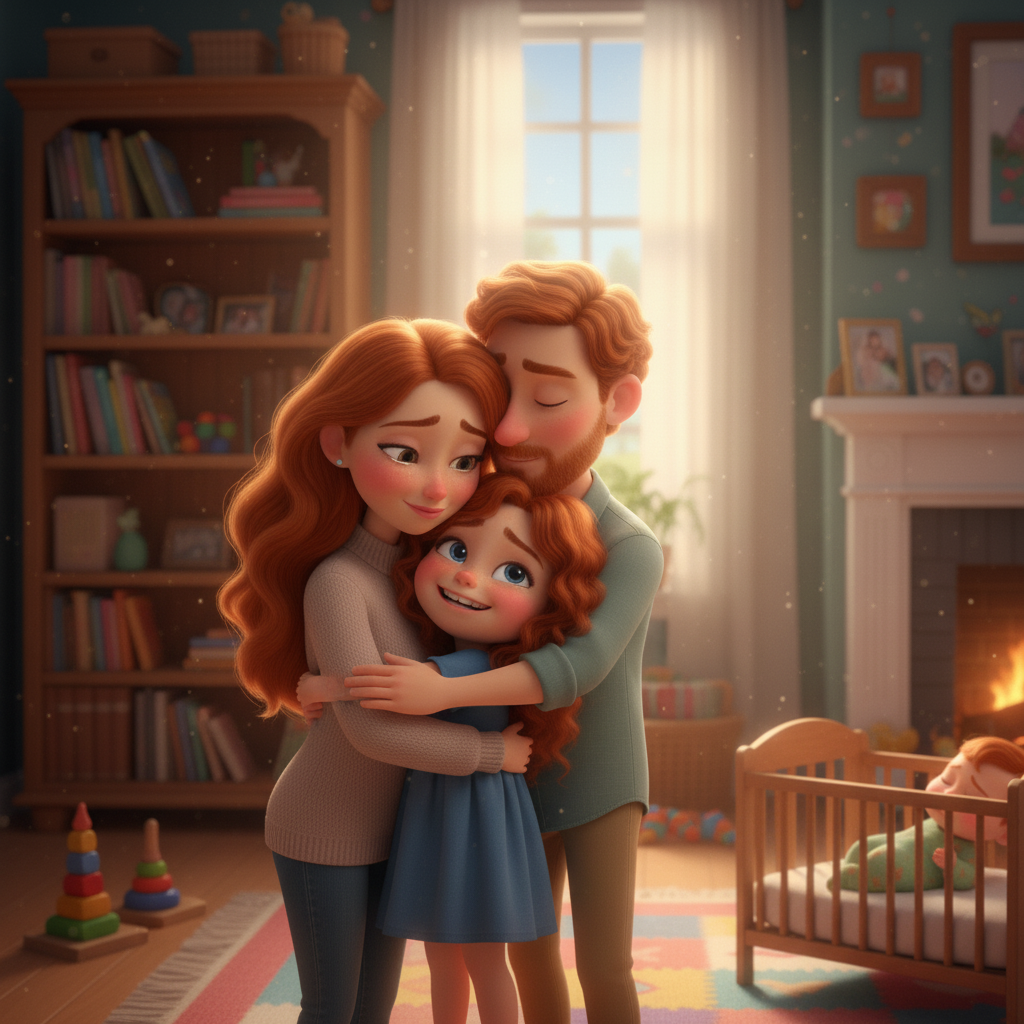 That night, Capucine fell asleep peacefully, her cuddly bunny in her arms. She now knew that her parents' love didn't divide, it multiplied. And she couldn't wait to see Léo grow up so she could share her games, her laughter, and her secrets with him.