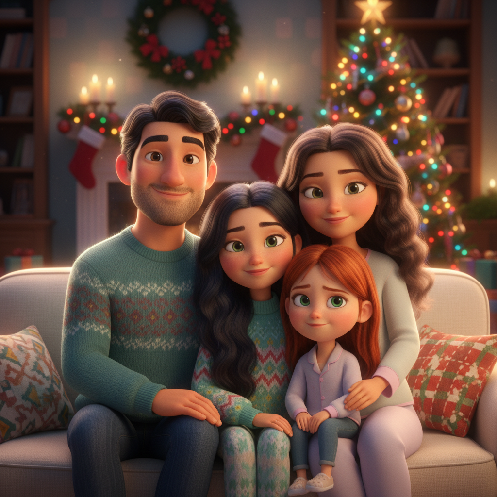 That night, Zoé fell asleep with a peaceful smile. She was no longer the little girl with the unusual hair. She was Zoé, the little elf with a big heart, loved by two extraordinary families. Her red hair and green eyes were no longer an enigma, but a magical gift that made her unique and wonderful.