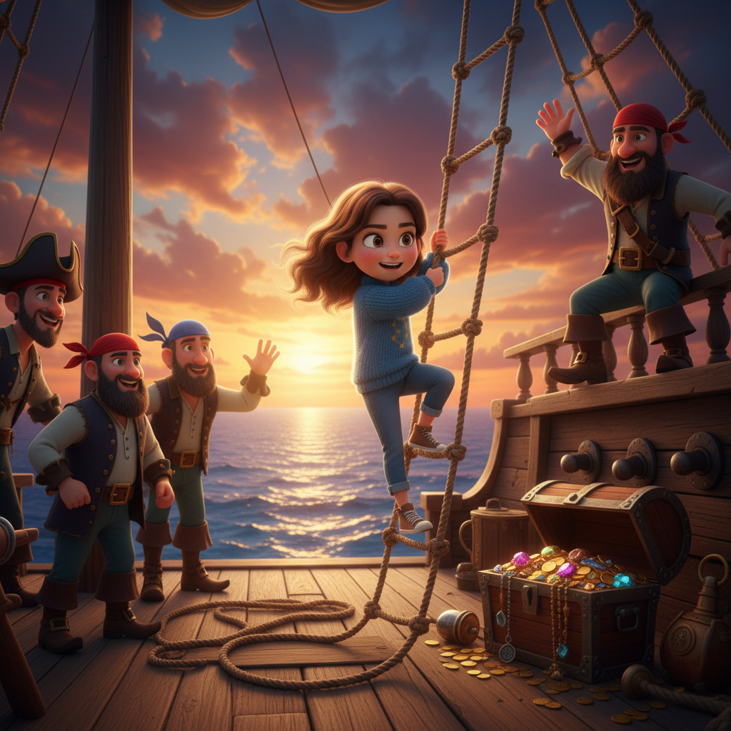 She sailed with the pirates in *Treasure Island*, learning to climb the ship's rigging and sing sea shanties.