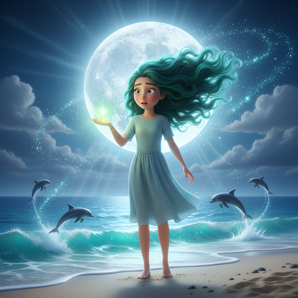 The star-shaped mark on my palm began to glow more brightly, especially on nights with a full moon. At first, it was barely noticeable—a faint phosphorescence I attributed to my imagination. But the phenomenon intensified. My green hair, which everyone at school took for a bold and unusual dye job, seemed to ripple on its own when I approached the ocean, as if drawn by some invisible force. Sometimes, I swore I heard voices in the murmur of the waves, as if the sea were trying to tell me a long-forgotten secret.