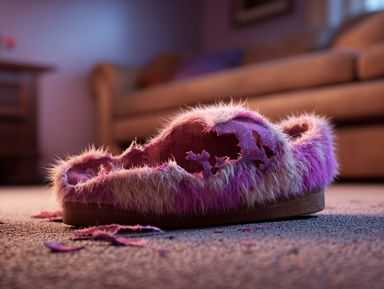 One morning, she went downstairs for breakfast and discovered a chewed-up slipper in the entrance.
