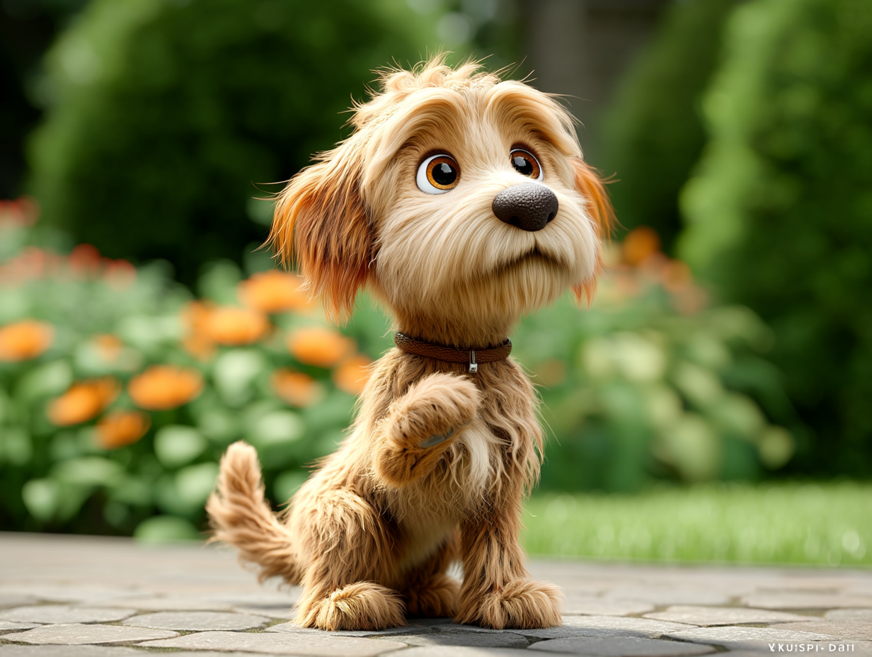 The little dog trots towards her, wagging its tail with feigned innocence, as if it had absolutely no idea what could possibly be upsetting her.