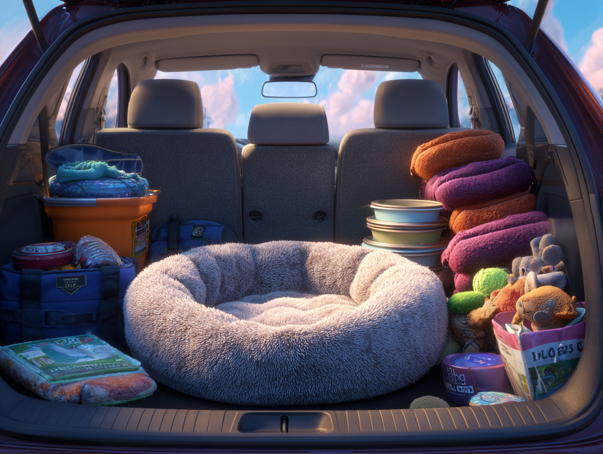 Mom makes a list: a basket, bowls, a leash, toys...