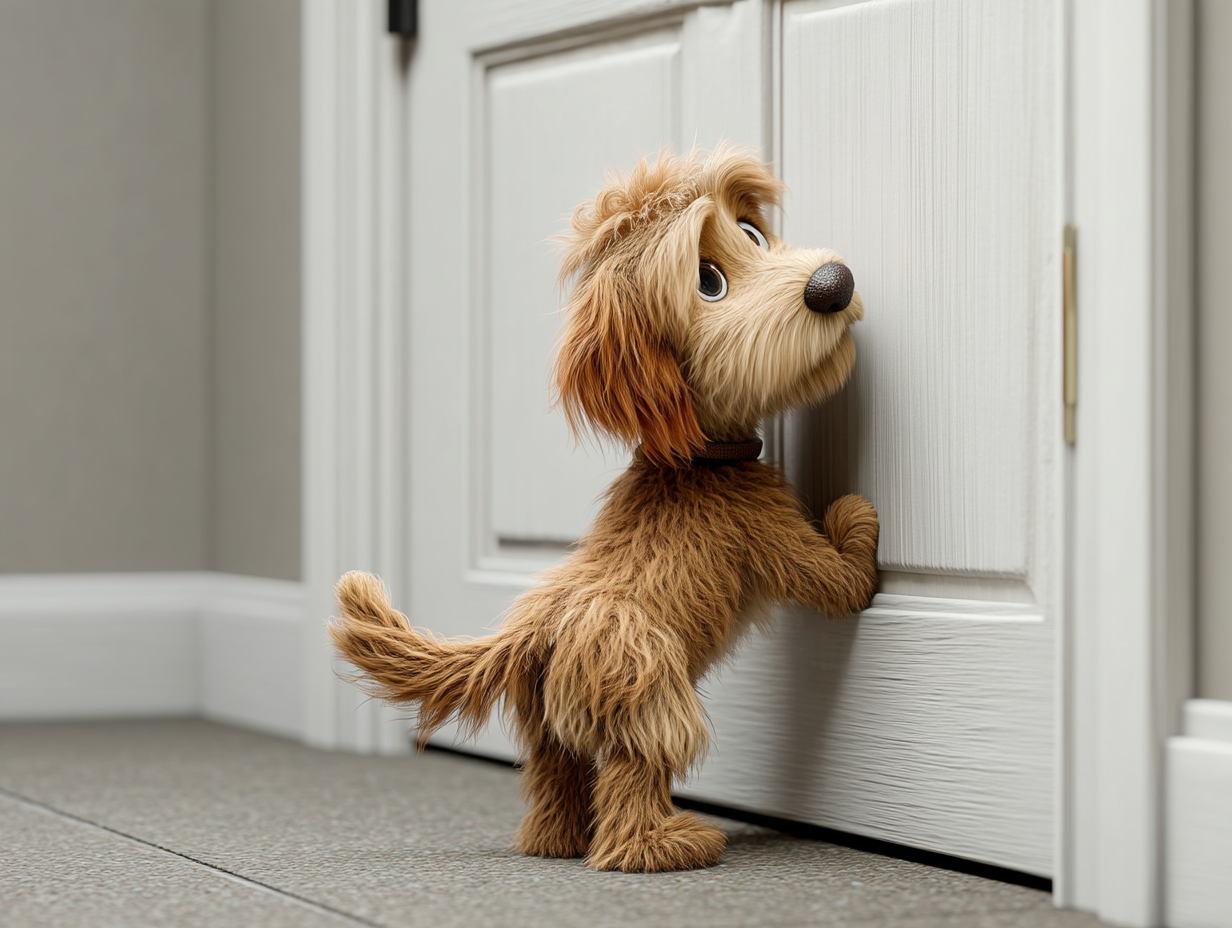 But as she busies herself tidying the living room, she notices something strange about Moka's behavior. The little dog isn't just quietly watching what she's doing. He circles her several times, making increasingly tighter circles. Then he strides purposefully toward the front door, places a front paw firmly against the wood, and turns back to Zoé, staring at her with an intense, pleading gaze. A plaintive whimper escapes his throat.