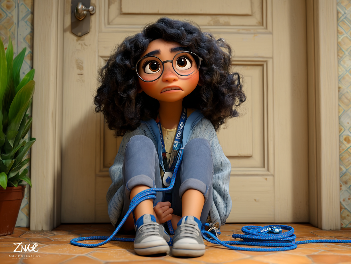 Today is the big day she's been waiting for: she's going to take it outside for the very first time with its brand new leash, the one she chose with her mom at the store. Her heart is pounding with anticipation.