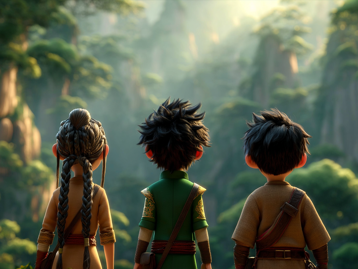 It stretched before them, vast and mysterious, unlike any forest they had ever seen. The trees were gigantic, ancient, their trunks so wide that it would take ten people holding hands to encircle them. But what was most remarkable were the leaves. They shone with such a pure, intense green that they seemed to be made of real jade—hence the forest's name. When the sun struck them, they sparkled like precious stones, creating a dazzling display of light.