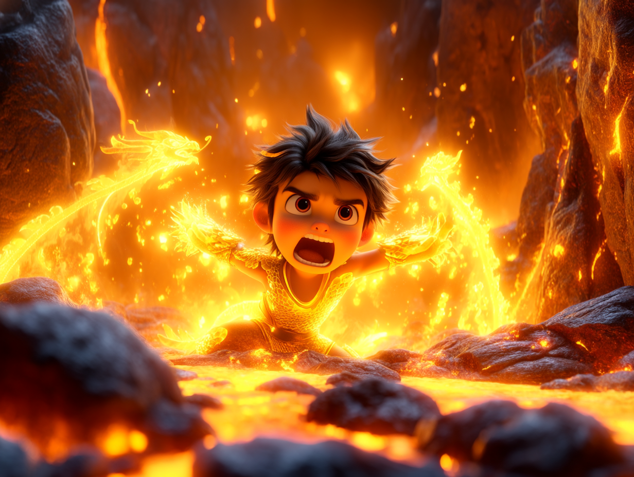 He runs out of the volcano, feeling more powerful and alive than ever. The transformation isn't complete—he hasn't become a dragon—but he has become something between human and dragon. A true dragon child.