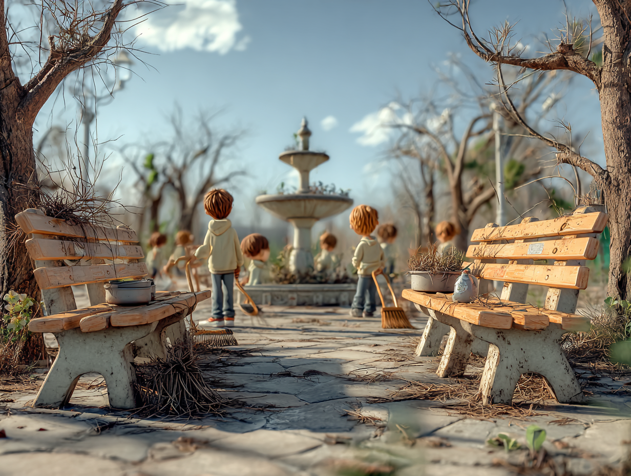 The next morning at school, Camille very honestly told her closest friends, whom she trusted completely, absolutely everything. "My paintings are truly special and magical, I must confess, but they definitely can't do everything on their own without outside help. If we truly want to save the park from demolition, we absolutely must work together as a team." The enthusiastic children then spent their entire sunny Wednesday afternoon meticulously gathering all the scattered dead branches, painstakingly cleaning the long, dusty, overgrown paths, and patiently straightening all the crooked and damaged benches.