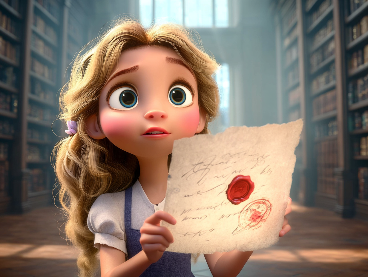 With hands trembling with excitement, she carefully opened the envelope and took out a handwritten letter in old-fashioned ink.