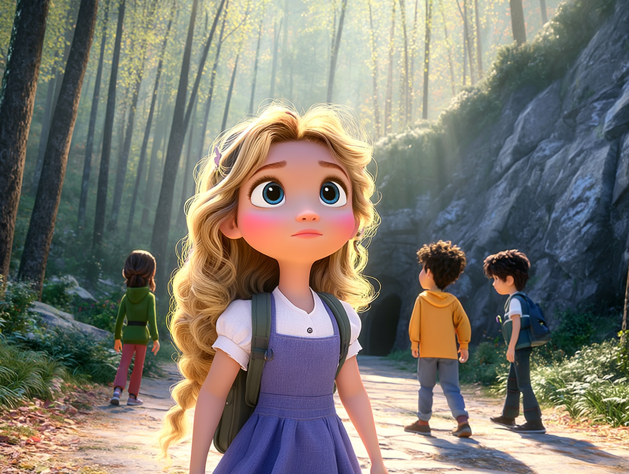 This adventure is too important, too mysterious. She gathers her friends and explains everything: the notebook, the clues, the mysterious cave. Enthusiastic and curious, they immediately agree to accompany her.