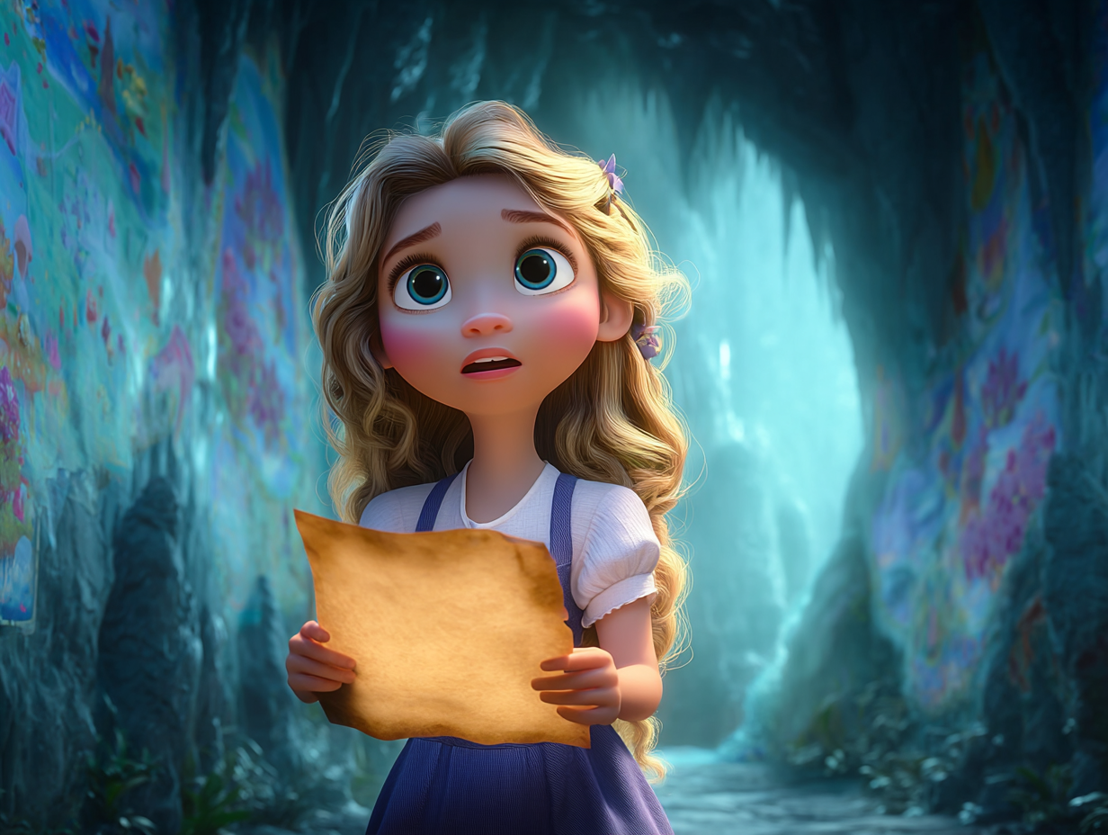 As they paint, the cave seems to come alive. The crystals shine brighter, and a fresco emerges beneath their brushes, far more vibrant than anything they could have imagined. When the final stroke is applied, a soft light floods the cave. A voice seems to echo around them: "The true power of magic lies in sharing."