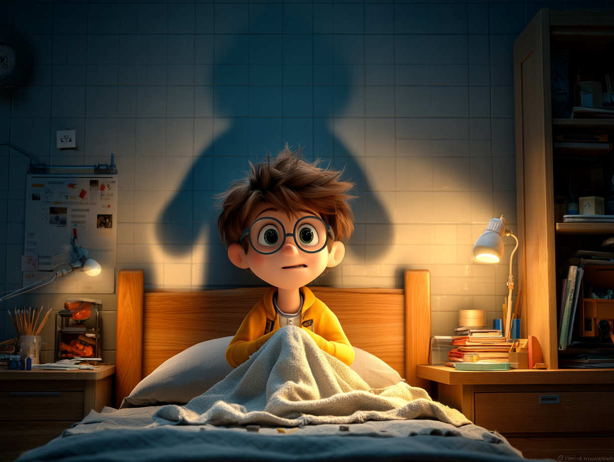 He pulls his duvet up to his chin and stares at a corner of his room where the shadow of his chair is silhouetted against the wall. What if that shadow moved on its own?
