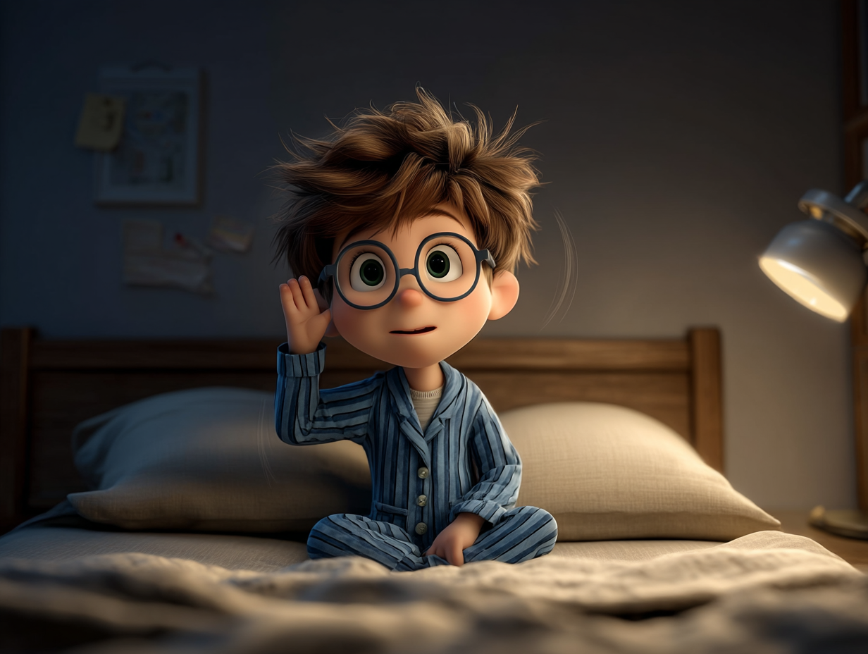 Satisfied, he turns off his bedside lamp (not the magic one, not yet) and goes back to bed. Little by little, his heart rate slows. His breathing becomes deeper and more regular. The sounds of the house no longer bother him. They are part of the night, like the stars are part of the sky. He closes his eyes and falls peacefully asleep, lulled by the familiar symphony of the house.