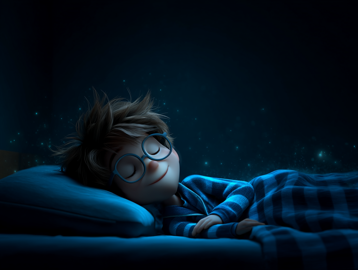 His body relaxes. His eyelids grow heavy. He falls asleep in the dark, without fear.