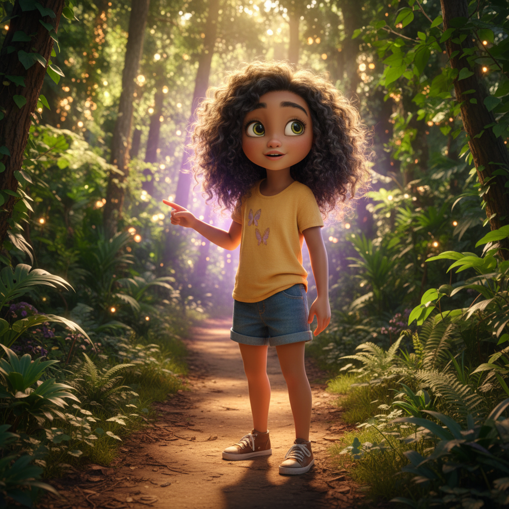 Naya loves walking in the forest after school. That day, the sun shone through the trees, creating patches of golden light on the ground. She walked along the little path she knew so well. The air smelled sweet, of earth and pine needles.