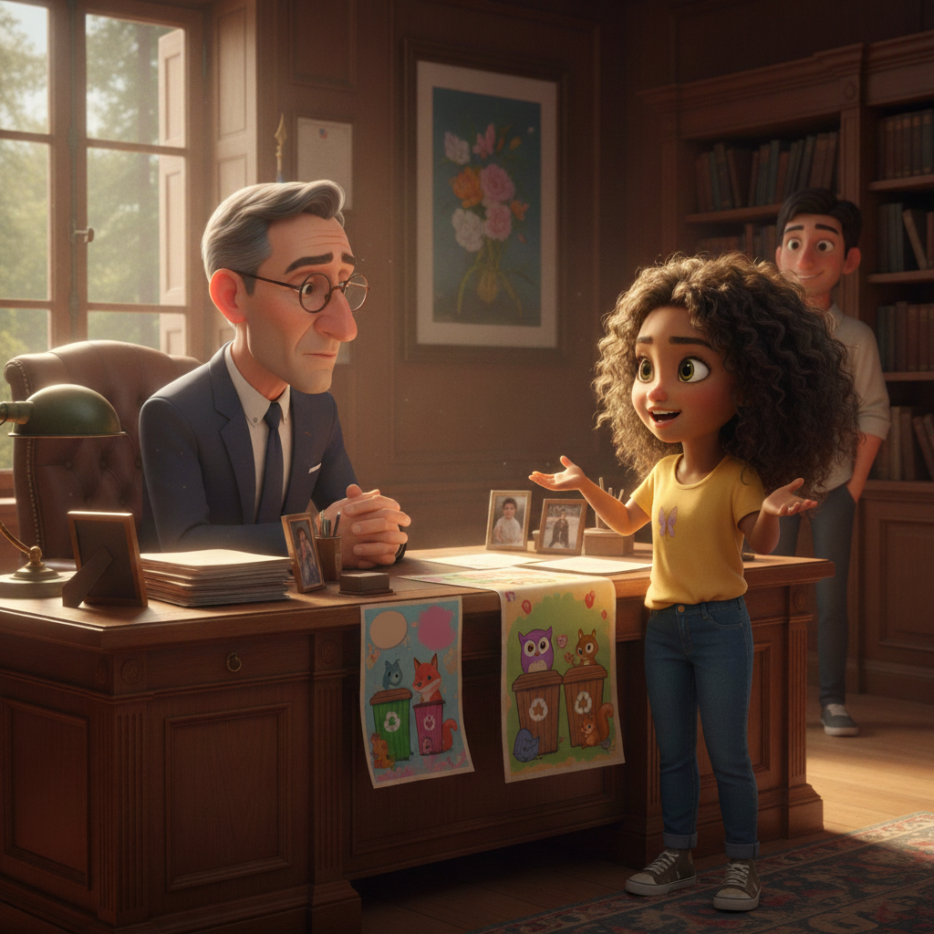 "My big girl who goes to see the mayor and saves the forest!" said her father, hugging her tightly.